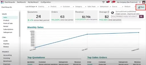 Dashboards App: In der Dashboards App können Spreadsheets über den neu eingefügten Share Button (oben rechts) per Link geteilt werden.